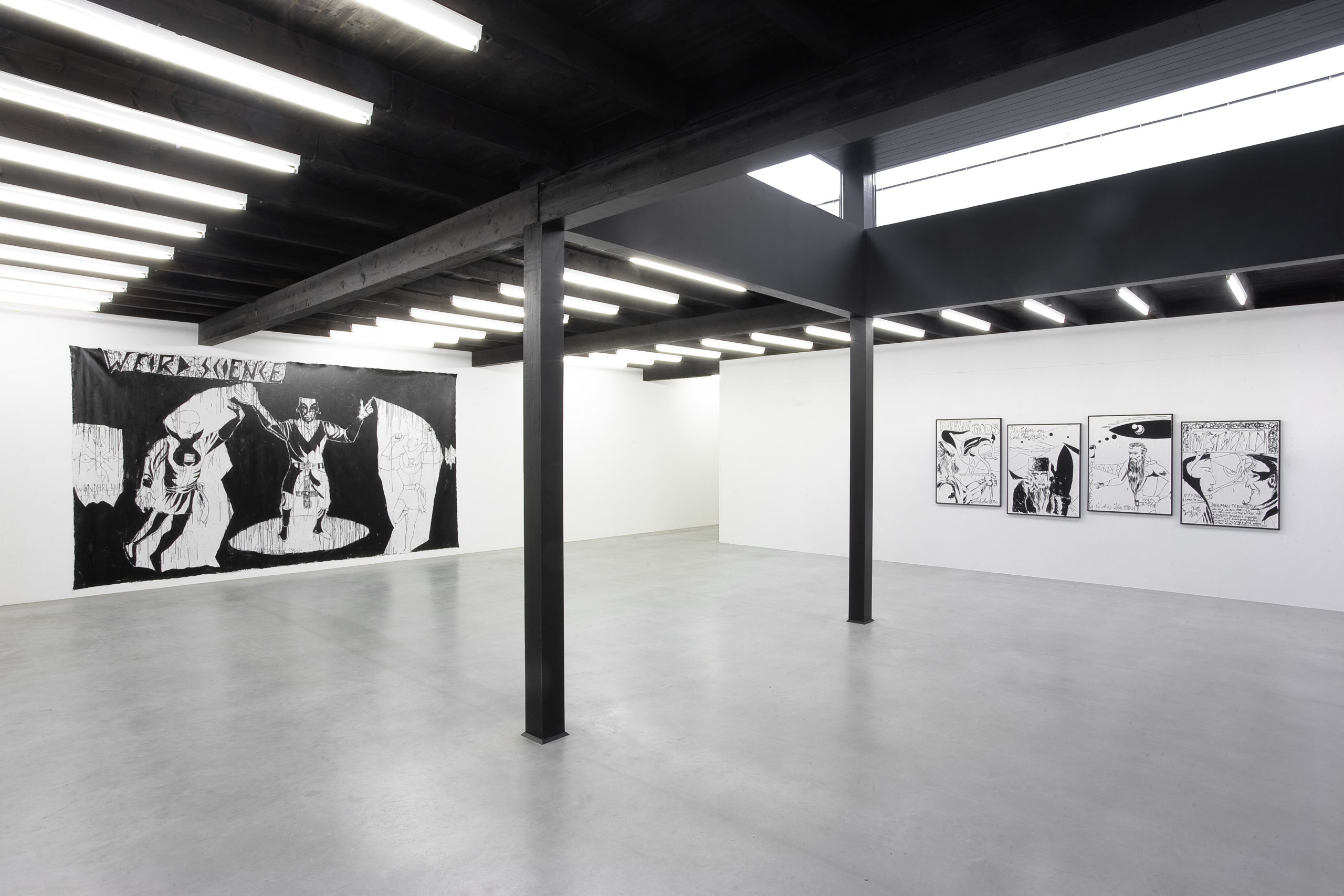 Andreas Hofer, der von 1991 bis 1997 an der Akademie der Bildenden Künste München und am Chelsea College of Art & Design in London studierte und seit 2000 in Berlin lebt, entwickelt seit den frühen 90er Jahren eine Kunst, die sehr unterschiedliche Quellen aktiviert, die teilweise allgemein anerkannt, andernteils aber auch fragwürdig oder verschüttet sind. Sie reichen von amerikanischen Comicstrips über deutsche Kunst- oder Architekturprodukte aus der Zeit des Nationalsozialismus, die Malerei von Kasimir Malewitsch, die populäre Faszination für die Welt der Dinosaurier oder den Kosmos einer Zukunft, wie er in der Science-Fiction-Welt entworfen wird.